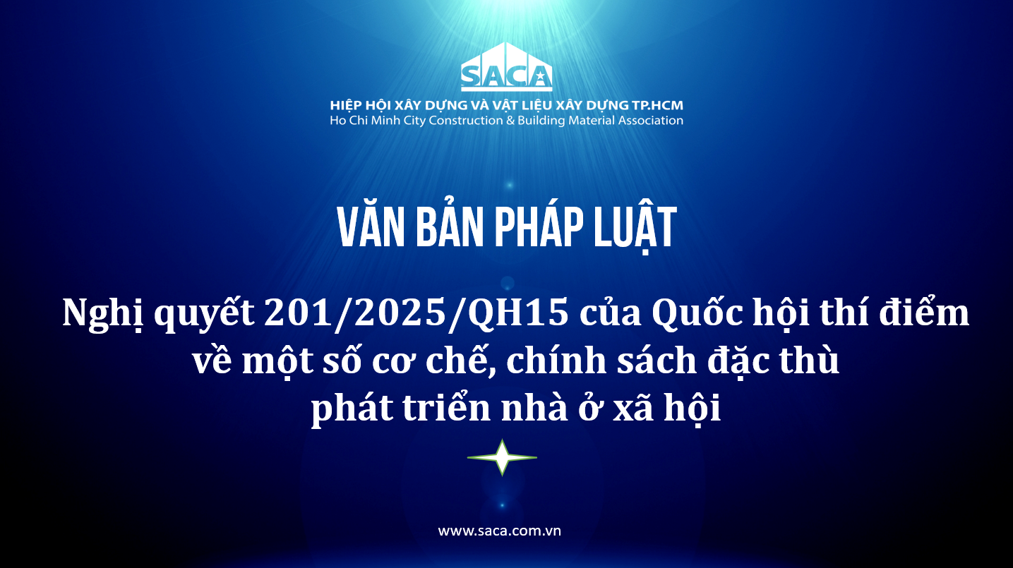 NGHỊ QUYẾT 201/2025/QH15 THÍ ĐIỂM VỀ MỘT SỐ CƠ CHẾ, CHÍNH SÁCH ĐẶC THÙ PHÁT TRIỂN NHÀ Ở XÃ HỘI