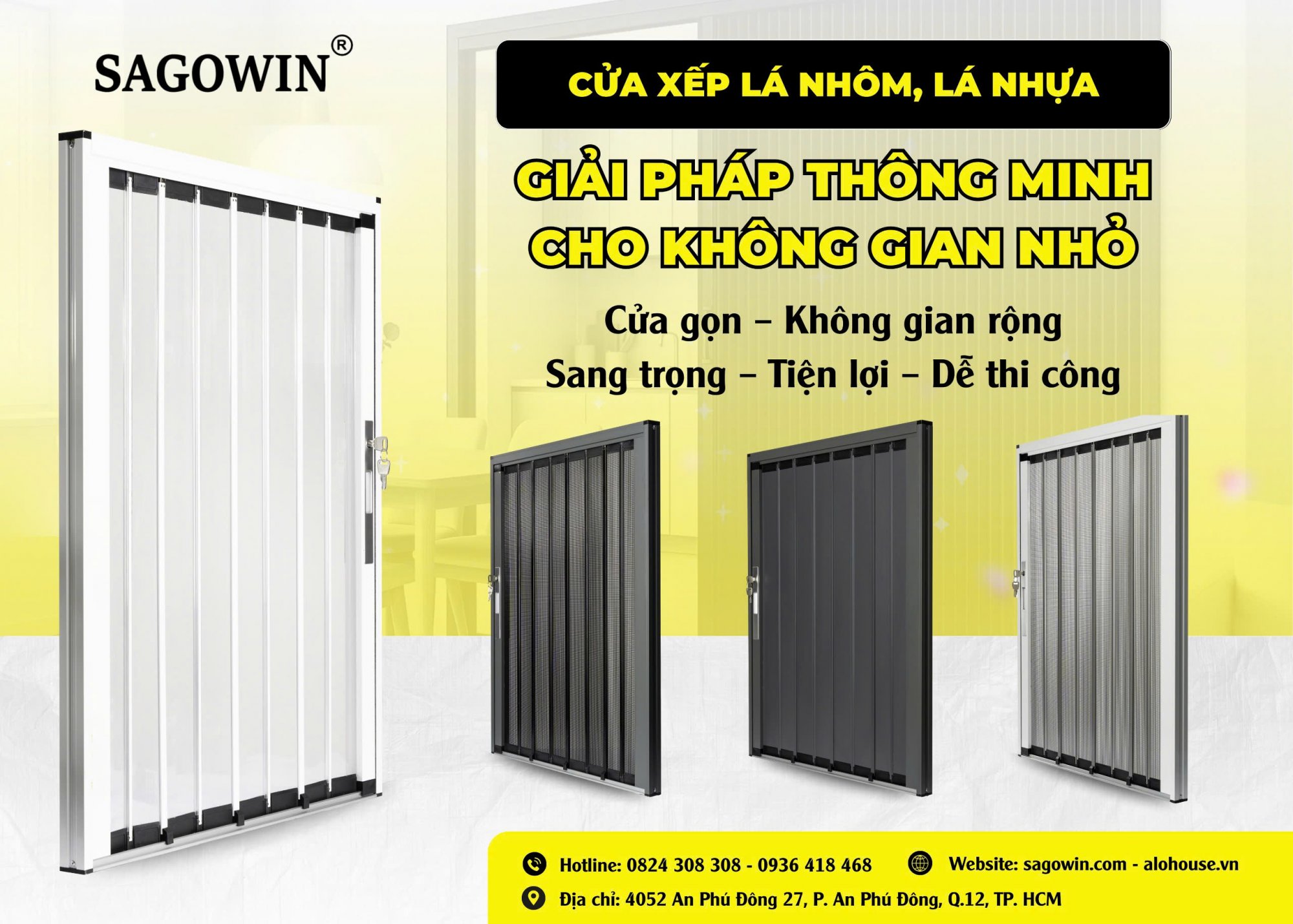 Cửa xếp lá nhôm của SAGOWIN phù hợp với những không gian cần chia tách như ban công, khu vực làm việc hoặc nhà vệ sinh.