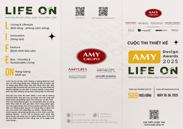 Công ty Cổ phần Công nghiệp Á Mỹ (AMY GRUPO) phát động cuộc thi AMY DESIGN AWARDS 2025 với chủ đề đầy ý nghĩa: 'L.I.F.E ON'. Cuộc thi hứa hẹn sẽ trở thành sân chơi bùng nổ, chắp cánh cho những ý tưởng thiết kế kiến trúc nội thất đột phá, đồng thời khẳng định vai trò tiên phong của AMY GRUPO trong việc đồng hành cùng sự phát triển của ngành kiến trúc – xây dựng Việt Nam.