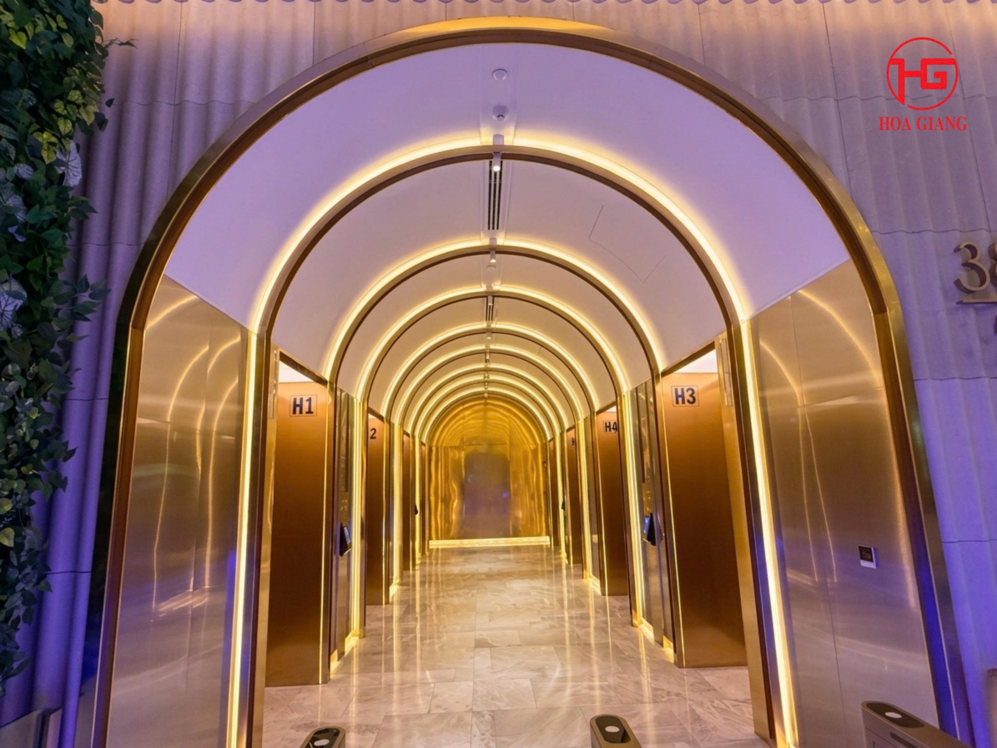 Dự án: The Grand Hồ Tràm. Hoàn thiện năm 2012. Vẫn giữ độ sắc sảo và bền màu cho đến nay.3. Các Dự án cao cấp tiêu biểu: Hoa Giang vinh hạnh nhận được sự tin tưởng của quý Chủ đầu tư lớn, các đơn vị thiết kế danh tiếng và các công ty xây dựng - trang trí nội thất lớn, để tự hào là đơn vị góp mặt trong các công trình yêu cầu hoàn thiện tinh xảo và sang trọng bậc nhất như: Hệ thống Trung tâm thương mại & Khách sạn 5 sao: SaiGon Marina IFC, JW Marriott, Intercontinental, Caravelle Sai Gon,... Trụ sở tập đoàn & Tòa nhà hạng A: Vietcombank Building, The Metropole, The Horizon Phú Mỹ Hưng, The Grand Hà Nội, Deutsches Haus, Sala Thủ Thiêm,... Showroom & Biệt thự cao cấp với nhiều loại hạng mục hoàn thiện từ Hệ thống cửa, vách kính, ốp trang trí sảnh thang máy, trang trí cabin thang máy, nẹp viền U, V, T,… và các hạng mục Inox nội thất cho không gian sống thượng lưu, sang trọng. Đặc biệt bề mặt hoàn thiện hiện đại mờ (Matte Finish) thích hợp độ ấm cúng của các công trình Căn hộ cao cấp, cùng với bề mặt hoàn thiện bóng (Glossy) là ứng viên hàng đầu cho các công trình lộng lẫy xa hoa của các dạng khách sạn 5 sao chuẩn quốc tế.