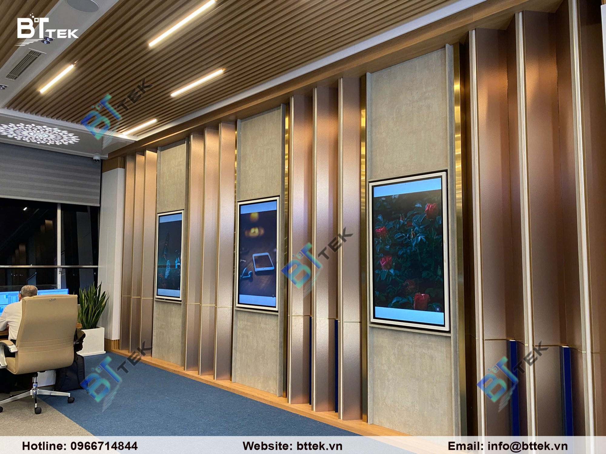 Song song đó, BTTEK cung cấp hệ sinh thái giải pháp A/V Pro và giải pháp hiển thị chuyên sâu cho doanh nghiệp và các dự án lớn trên toàn quốc. Các giải pháp tiêu biểu gồm: màn hình LED không viền cho đại sảnh và trung tâm điều hành; Video Wall vận hành 24/7 cho phòng giám sát; màn hình tương tác phục vụ họp trực tuyến và đào tạo; Màn hình chuyên dụng cho truyền thông nội bộ và quảng bá thương hiệu. Những giải pháp này được ứng dụng rộng rãi trong các lĩnh vực Nhà nước, doanh nghiệp, giáo dục, y tế, nhà máy và mô hình ứng dụng đặc thù.