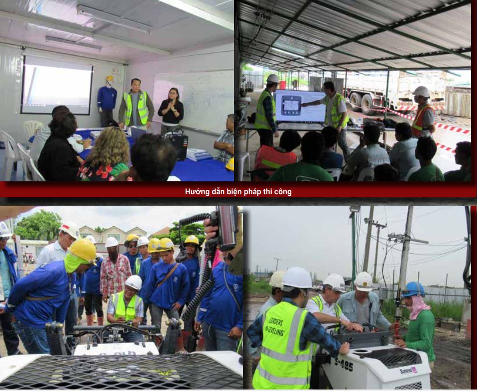 • Giám sát & Kiểm tra: Hệ thống cảm biến thông minh GIATEC® (Canada) giám sát cường độ, nhiệt độ bê tông theo thời gian thực; và thiết bị đo sàn FACE Dipstick® 2285 (Hoa Kỳ), 'tiêu chuẩn vàng' để đo chỉ số FF/FL.