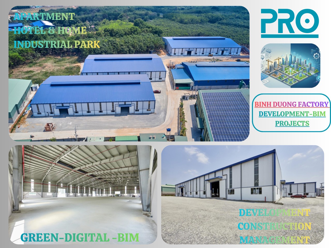 PRO là thương hiệu phát triển dự án xây dựng được định vị theo mô hình doanh nghiệp công nghệ – quản trị hiện đại, hoạt động chuyên sâu trong các lĩnh vực: bất động sản dân dụng, tổ hợp thương mại – khách sạn, nhà máy sản xuất và khu công nghiệp. Với định hướng phát triển bền vững và tư duy tích hợp toàn diện, PRO cung cấp giải pháp trọn gói từ nghiên cứu tiền khả thi, quy hoạch, thiết kế, quản lý dự án, thi công xây dựng đến vận hành khai thác theo chuẩn quốc tế. Mỗi dự án do PRO triển khai không chỉ đáp ứng yêu cầu kỹ thuật và mỹ thuật, mà còn được hoạch định như một mô hình đầu tư chiến lược, tối ưu hiệu quả tài chính và giá trị tài sản dài hạn.