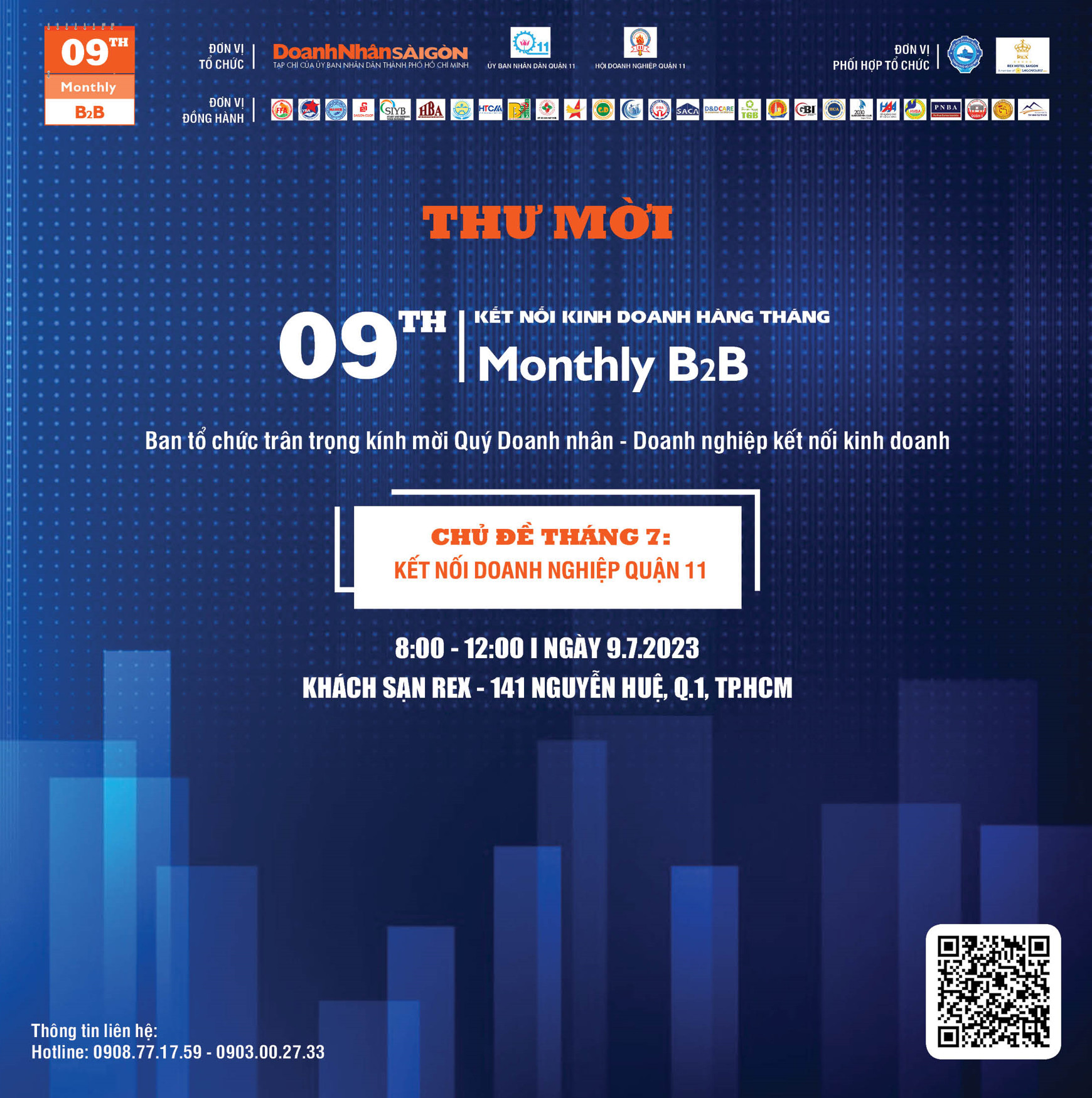 9th Monthly B2B tháng 7, Tạp chí Doanh Nhân Sài Gòn phối hợp với Ủy ban Nhân dân Quận 11, Hội Doanh nghiệp Quận 11 tổ chức, với sự đồng hành của 27 Hiệp hội - Hội - CLB Doanh nghiệp. Đây là sự kiện kết nối kinh doanh B2B đa ngành, giữa các doanh nghiệp trên địa bàn TP. HCM và các tỉnh, thành.