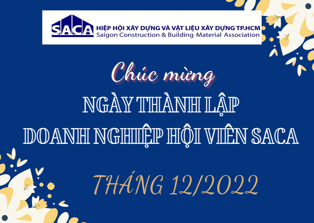 Hiệp hội Xây dựng và Vật liệu Xây dựng TP.HCM (SACA) xin gửi những lời chúc mừng tới các doanh nghiệp Hội viên Hiệp hội SACA có ngày thành lập trong tháng 12.