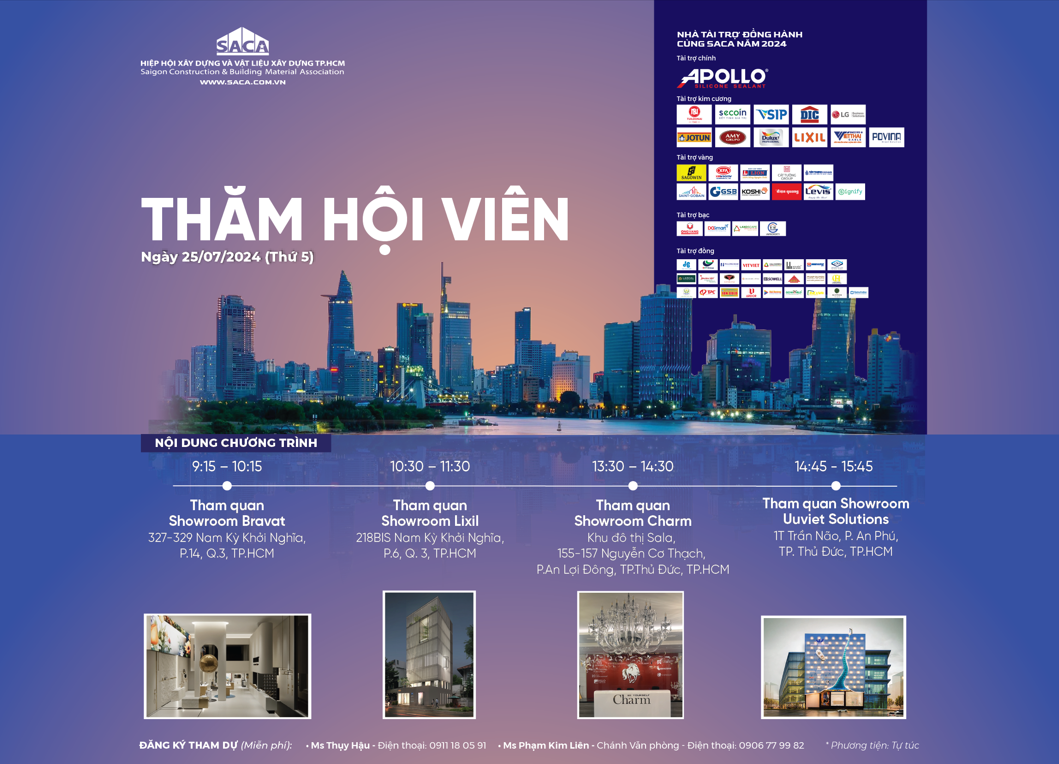- Chương trình lần này sẽ đến tham quan 4 showroom doanh nghiệp Hội viên: