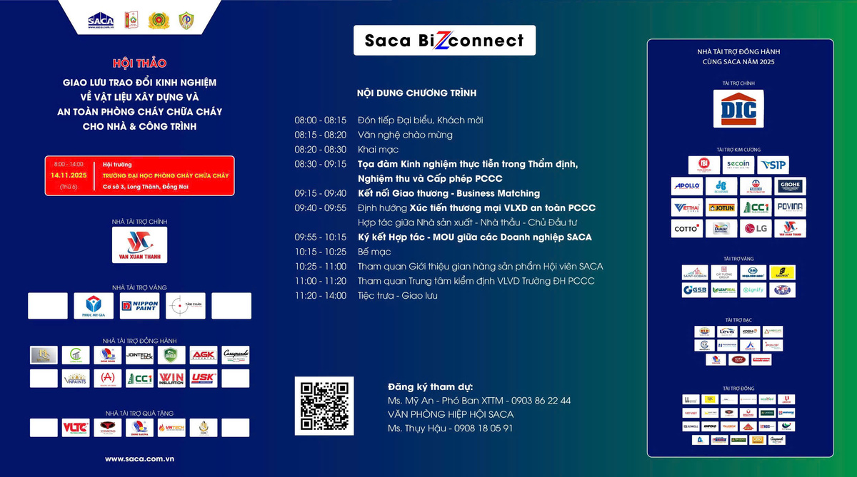 Ngày 14/11 tới đây, Hiệp hội Xây dựng & Vật liệu Xây dựng TP.HCM (SACA) phối hợp cùng Trường Đại học Phòng cháy Chữa cháy tổ chức Hội thảo “Giao lưu trao đổi kinh nghiệm về Vật liệu xây dựng và An toàn Phòng cháy Chữa cháy cho nhà & công trình” tại hội trường Trường Đại học Phòng cháy Chữa cháy, Cơ sở 3 (Long Thành, Đồng Nai).