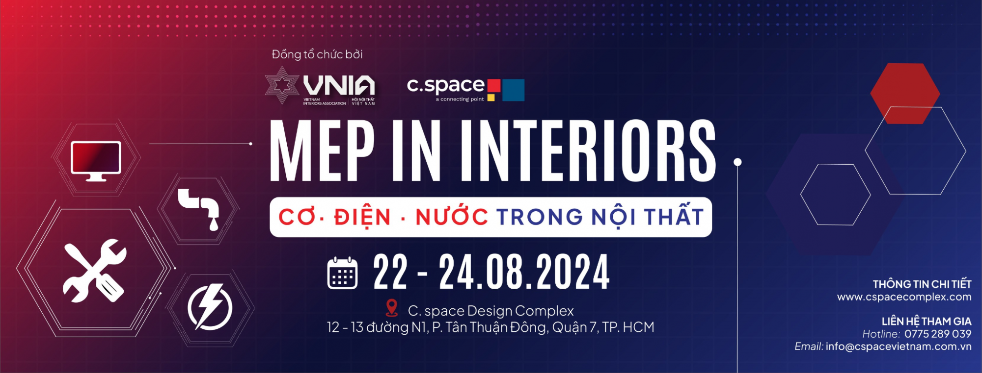 Nhằm giải quyết những thách thức trong việc tích hợp hệ thống MEP vào thiết kế nội thất, mang đến không gian sống tiện nghi và an toàn, Hội Nội thất Việt Nam phối hợp cùng C.space Design Complex tổ chức sự kiện “MEP TRONG NỘI THẤT”, diễn ra từ ngày 22 đến 24 tháng 8 năm 2024 tại Thành phố Hồ Chí Minh.