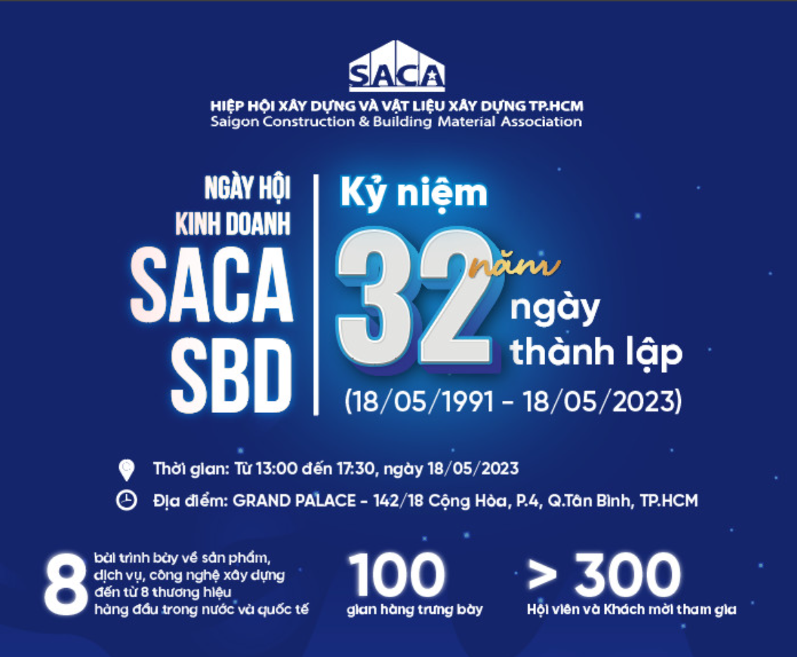 Ngày 18/05 tới đây, Hiệp hội Xây dựng và Vật liệu xây dựng TP.HCM (SACA) tổ chức chương trình Ngày hội kinh doanh SACA SBD kỷ niệm 32 năm ngày thành lập.