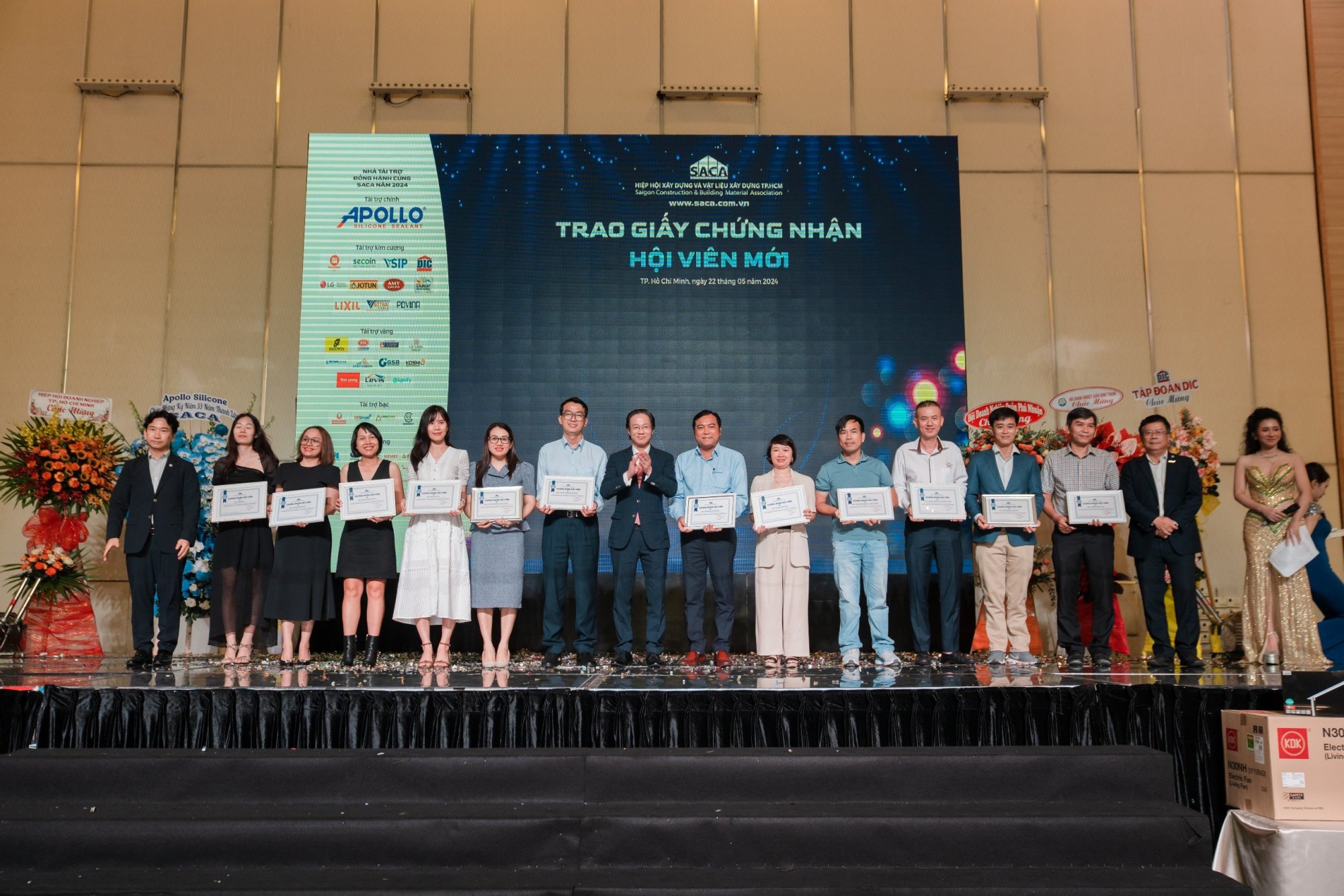 Trong khuôn khổ chương trình Ngày hội kinh doanh mở SACA và Gala kỷ niệm 33 năm thành lập Hiệp hội (18/05/1991 - 18/05/2024) được tổ chức ngày 22/05, Hiệp hội SACA đã trao giấy chứng nhận Hội viên mới gia nhập vào Đại gia đình Hiệp hội. Tin rằng, với nguồn lực là những Hội viên tham gia nhiệt tình, năng nỗ, Hiệp hội SACA sẽ dũng mãnh hơn nữa, từ đó tạo ra nhiều chương trình, nhiều hoạt động kết nối bổ ích, mang lại giá trị thực cho Hội viên.