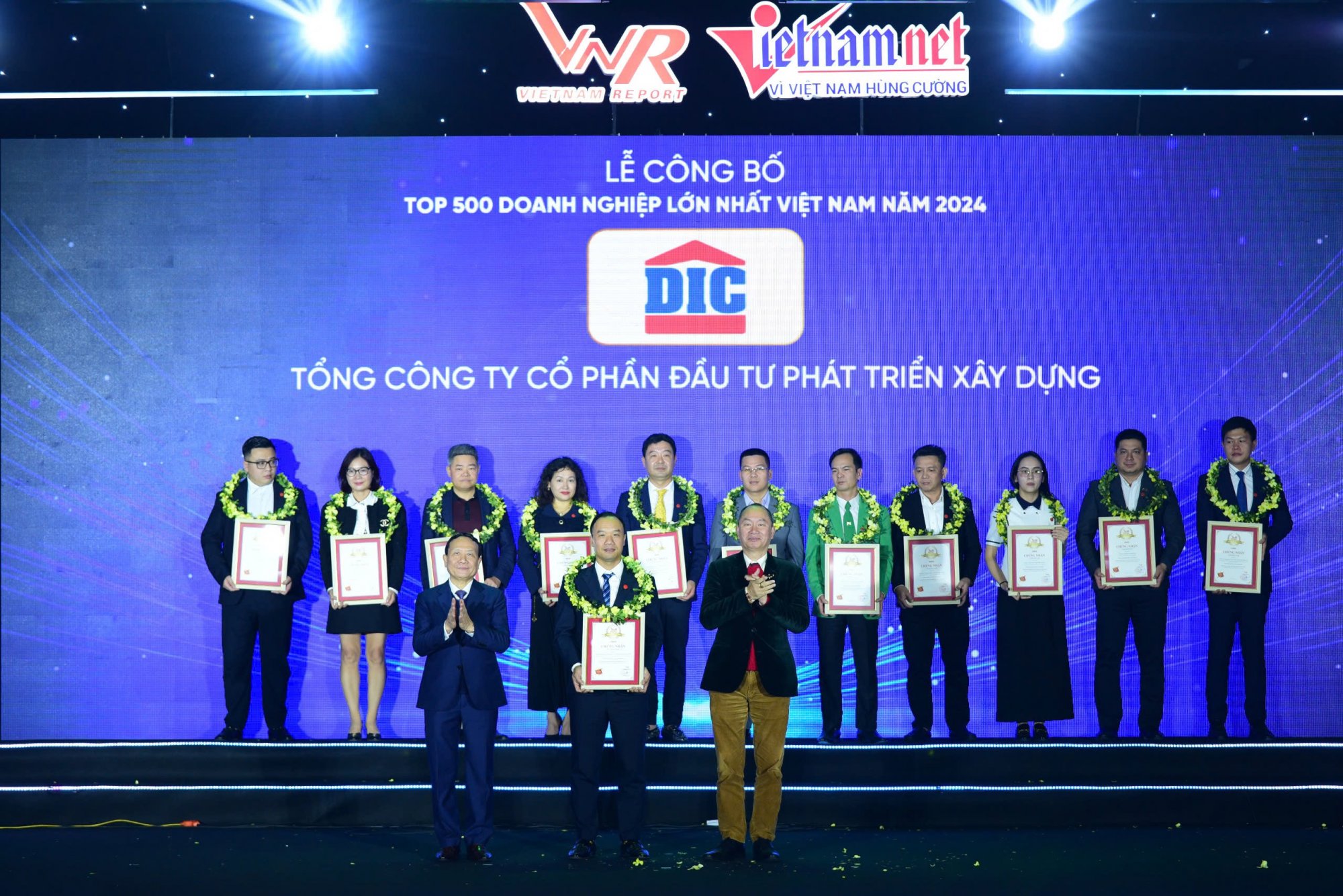 Ngày 08/01/2025, Công ty Cổ phần Báo cáo Đánh giá Việt Nam (Vietnam Report) phối hợp cùng Báo VietNamNet tổ chức “Lễ công bố Bảng xếp hạng VNR500 – Top 500 Doanh nghiệp lớn nhất Việt Nam năm 2024”. Tập đoàn DIC (HoSE: DIG) đã được vinh danh tại sự kiện, đánh dấu năm thứ 7 liên tiếp có mặt trong bảng xếp hạng (BXH) uy tín này.