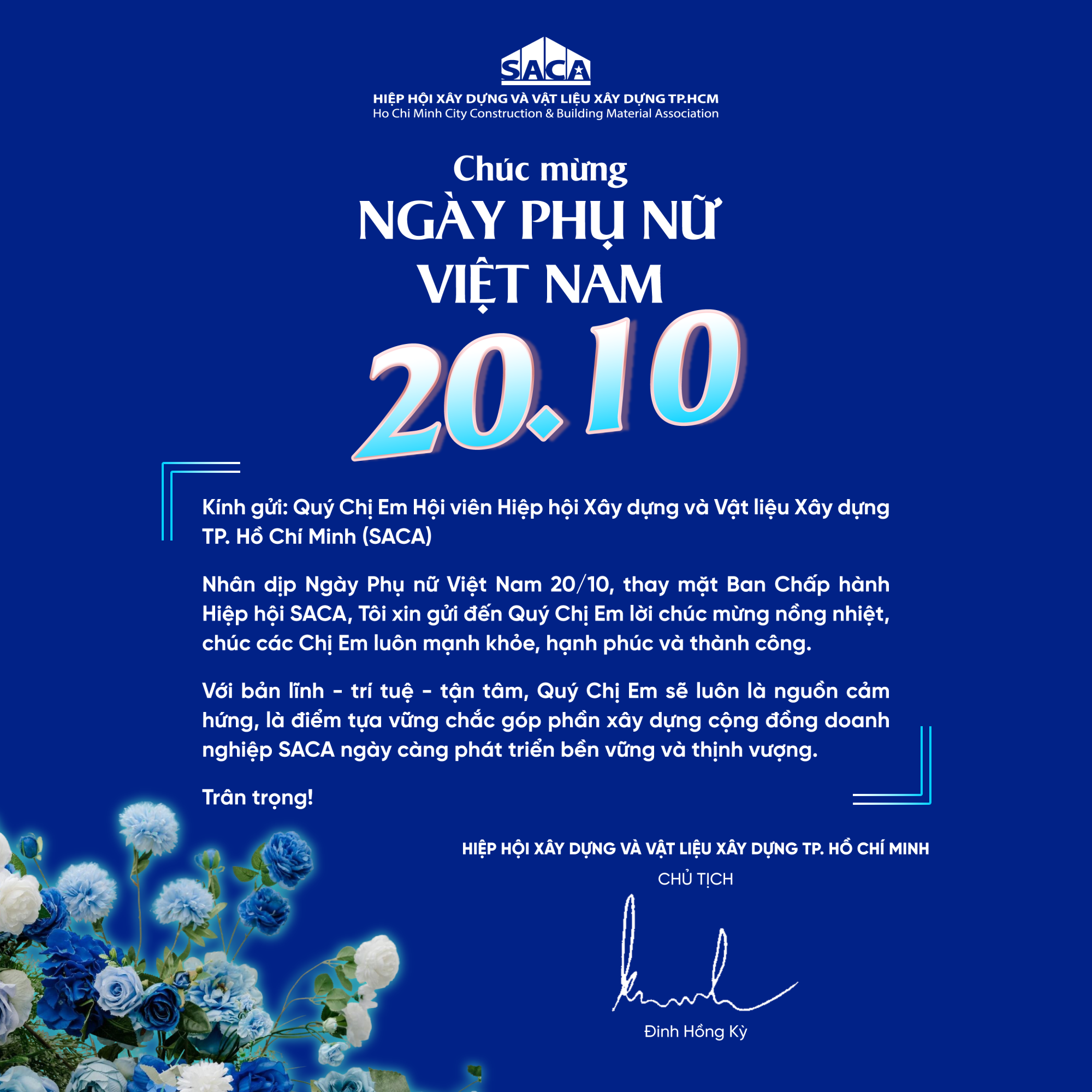 THIỆP CHÚC MỪNG NGÀY PHỤ NỮ VIỆT NAM 20.10 CỦA CHỦ TỊCH HIỆP HỘI SACA