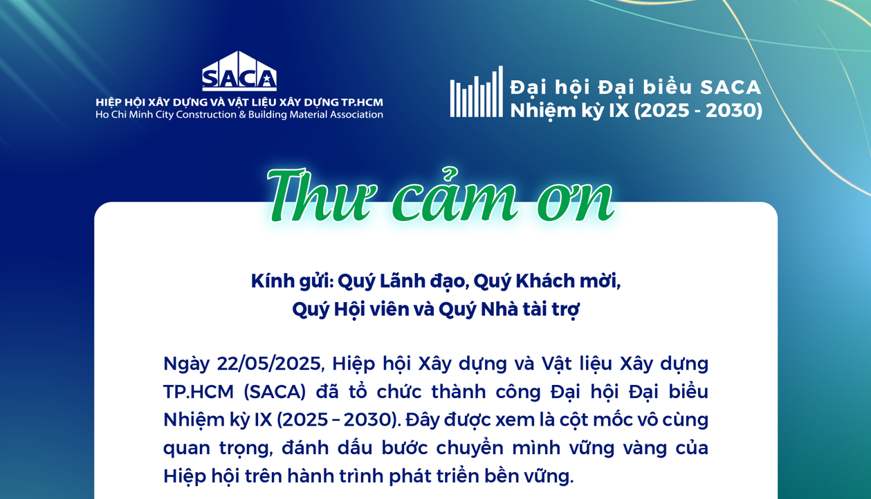 THƯ CẢM ƠN - ĐẠI HỘI ĐẠI BIỂU SACA NHIỆM KỲ IX (2021-2025)