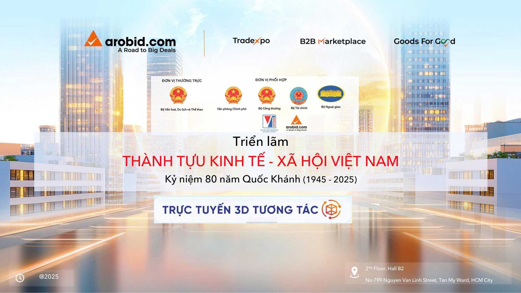 Nhân kỷ niệm 80 năm Quốc khánh (02/09/1945 – 02/09/2025), Công ty Arobid đồng hành cùng Cục Xúc tiến Thương mại (Bộ Công Thương) và Ban Chỉ Đạo dự án để số hóa triển lãm “Thành tựu Kinh tế - Xã hội Việt Nam”. Nền tảng triển lãm trực tuyến 3D giúp khắc họa và gìn giữ di sản số quốc gia này cho các thế hệ tương lai và cộng đồng quốc tế.